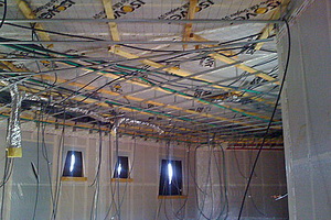 Существуют различные способы прокладки проводки в строениях разного типа. В деревянном доме прокладывается открытая проводка, в кирпичном — она может быть и закрытой. Внутри строения прокладка проводки в доме осуществляется на расстоянии 15—20 см от потолка, при подводе к люстрам они проходят непосредственно по потолку. Если выполнить вышеуказанные требования сложно, то лучше уложить провода в трубы или спрятать их в стены. Исключением может быть лишь спуск проводов к выключателям и розеткам в сухом помещении.