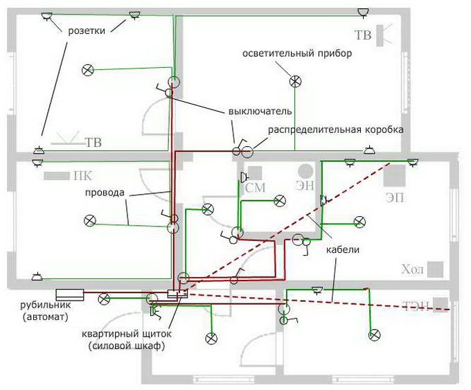 Схема монтажа проводки