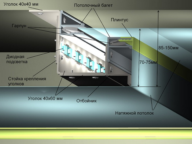 В реализации дизайнерских решений по украшению потолка именно подсветке отводится главная роль, поскольку освещение задает общий тон всему помещению.