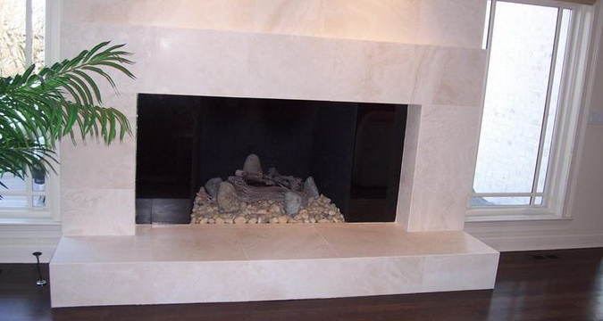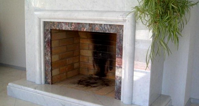 Мрамор — наиболее популярный материал для отделки каминов. Он недорогой по стоимости, имеет богатую цветовую палитру.