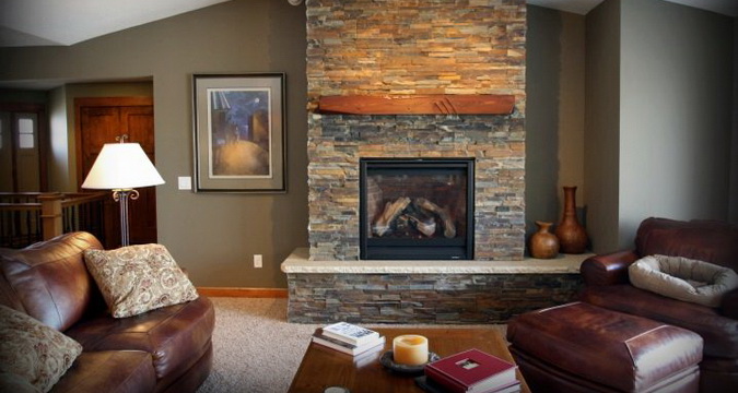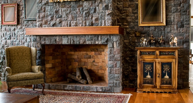 Предварительно камин протапливают, камень выдерживают в том же помещении и затем раскладывают на полу для составления «рисунка». Затем поверхность камина грунтуют, разводят клей и монтируют нижний ряд камней. Незначительное различие отдельных камней в оттенках допустимо, но имейте в виду, что более темные нижние ряды смотрятся эффектнее, чем верхние. По желанию можно нанести на камень термостойкий лак.