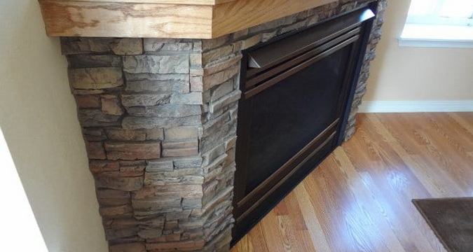 Посмотрите на фото, как можно выполнить отделку камина декоративным камнем своими руками: