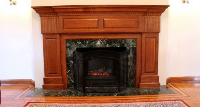 Деревянную отделку устанавливают как можно дальше от очага. Поэтому камин может быть отделан деревом частично или с образованием ниши глубиной 5-10см относительно кирпичного каркаса. При таком подходе дерево будет нагреваться в пределах допустимого значения.