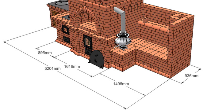 - Хлебная печь (модификация русской печи без шестка и с внутренним дымоходом)