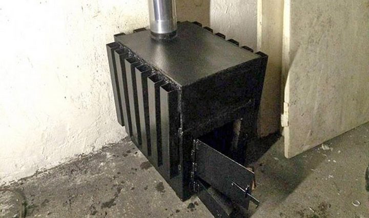 Печь чаще всего сооружают в двухсотлитровой бочке высотой 89 см, диаметром 60 см, весом 21-25 кг. Топливом для нее могут служить дрова, отходы деревообработки, топливные брикеты. Из-за тонких металлических стенок КПД этой печи не более 15-20 %.