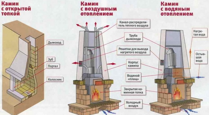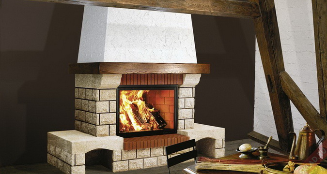 Представляют собой достаточно сложную конструкцию и состоят из топки, дымохода и облицовки (портала).