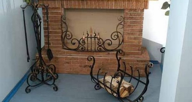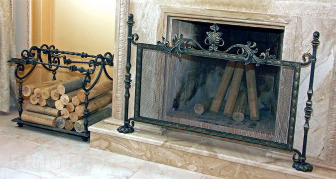 Экран и кованная дверца. Открытую топку рекомендуется оградить экраном и кованой решеткой.