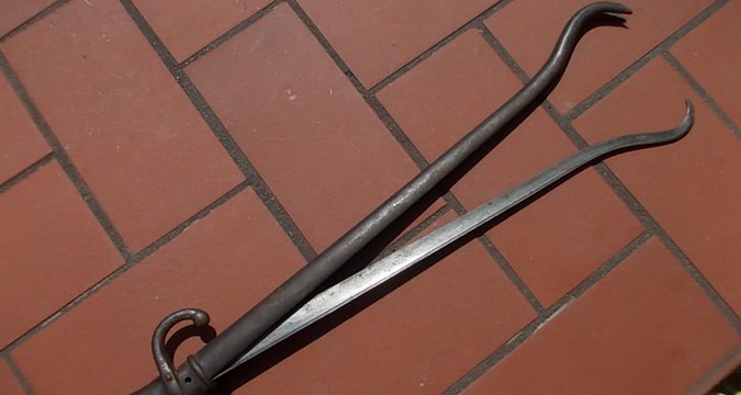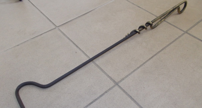 Кочерга. Ей удобно разгребать и удалять застрявшие угли с решетки, разбивать горящие дрова на части.