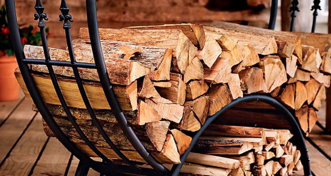 Дровница может быть похожа на корзину, ящик или подставку. Часто ее подбирают под сервитер. Ее располагают на безопасном расстоянии от огня.