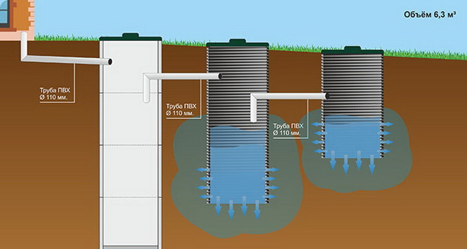Малый объем рабочих камер не позволит эффективно переработать стоки из туалета (для них потребуется откачка ассенизаторами), но вполне эффективно справится с очисткой воды из кухни или душа. Бочки легко заглубить в грунт на необходимую для обеспечения самотека глубину и легко откачать, они обеспечивают высокую герметичность и защиту грунтовых вод от своего содержимого, обладают высокой химической стойкостью. Это оптимальный вариант для небольшой дачи с малым суточным расходом воды и незначительным ее загрязнением моющими средствами.
