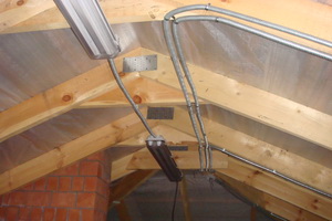 Для электрификации чердака в качестве проводника, как правило, используют изолированные медные одножильные провода, которые располагают на расстоянии как минимум 5 см друг от друга.
