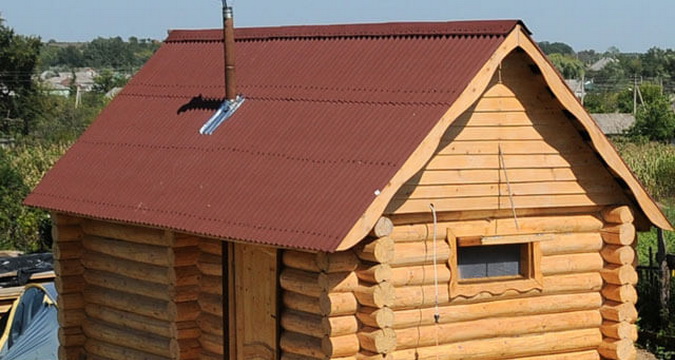 Если вы строите баню на открытом месте, продуваемом ветрами, лучше сделать односкатную или двускатную крышу с небольшим уклоном.