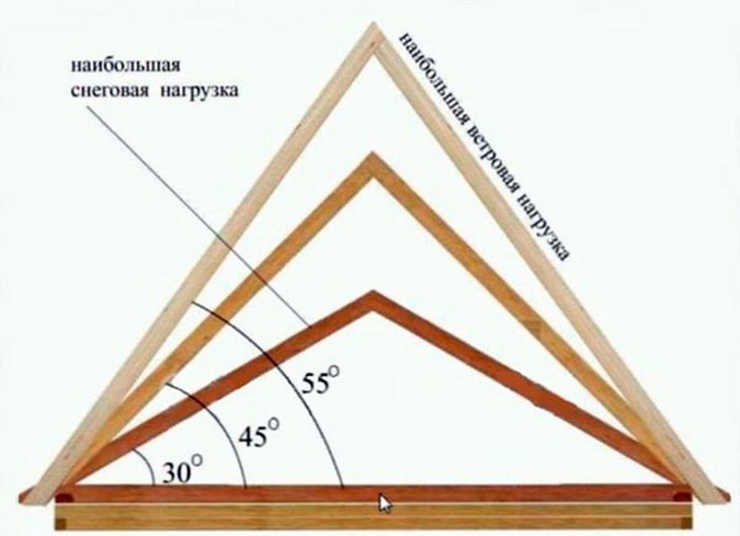 Уклон крыши выбирают исходя из климатических условий конкретной местности. Чем больше осадков выпадает в данном регионе, тем более крутым делают наклон крыши, в среднем — в диапазоне от 10° до 60°. Чем круче кровля, тем больше материала нужно для ее строительства.