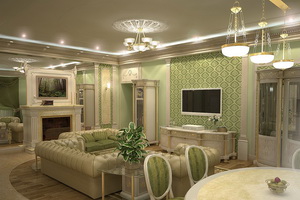 Общие виды систем освещения: в этом случае вся площадь помещения освещается равномерно рассеянным светом от источников, расположенных на одинаковом расстоянии друг от друга. Если осветительный прибор только один, то в какой-то части помещения свет будет немного ярче, но в любом случае резких перепадов быть не должно. Такое освещение дает люстра, расположенная посередине потолка.