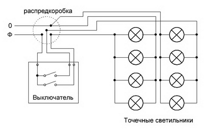 Для начала, перед тем как выполнять монтаж электрического освещения, необходимо составить схему расположения светильников и выключателей.