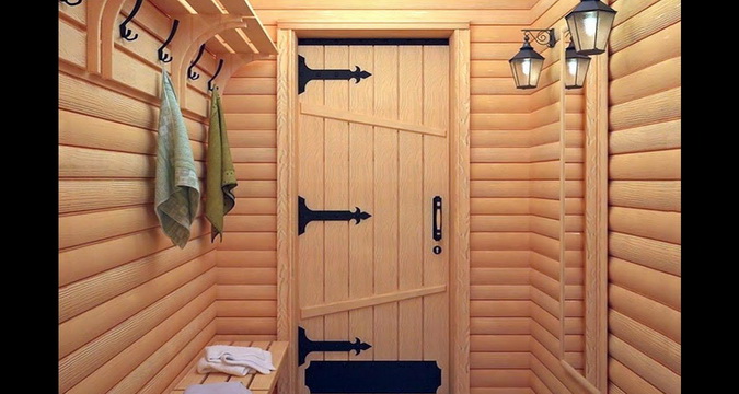 Казалось бы: вход в баню — не парная, температура и влажность должны быть обычными, но нет, влажность и здесь будет повышенной. Это скажется и на том, какую входную дверь установить в баню и какую мебель выбрать в комнату отдыха. Вариантов здесь не так много.