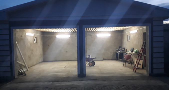 Освещение гаража рекомендуется выполнить в четырех точках, расположив по две точки с левой и с правой стороны или две точки впереди и две позади.