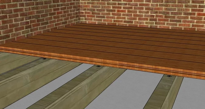 Дешево и быстро в гараже можно соорудить деревянное покрытие пола, которое выполняется с помощью лаг сечением 100 X 100 мм. Но деревянный пол — это очень недолговечный вариант для гаража, какие бы меры по его гидроизоляции ни принимались. При всех затраченных усилиях срок службы деревянного настила, уложенного на бетонное покрытие, в среднем составляет 5 лет. Его быстро разрушают всевозможные химические жидкости, а шипованные шины нарушают целостность покрытия.