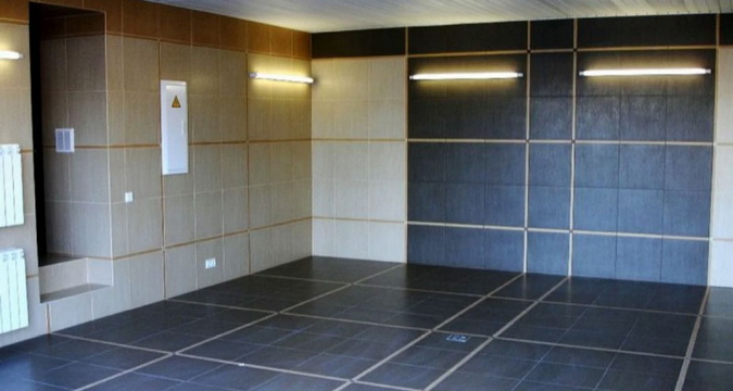 Отделка стен керамической плиткой. Это один из лучших вариантов отделки. Покрытая керамической плиткой поверхность прочна и надежно защищена от повреждений, воды и огня. Гаражи, отделанные керамической плиткой, смотрятся ухоженно и привлекательно. Но данный способ подходит только для довольно крепких стен помещения из бетона, кирпича и т. п.