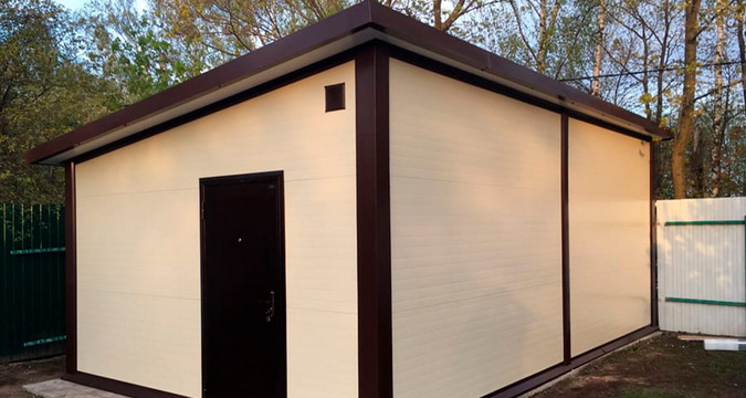 Сендвич-панели – ещё один материал, из какого можно строить сарай, это очень удачный выбор для быстрой постройки. Такие панели состоят из утеплителя, который с обеих сторон закрыт гипсокартоном, металлом, пластиком или OSB-плитой.