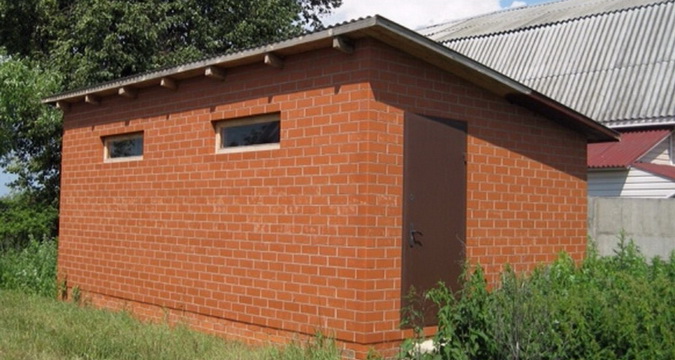 Этот современный строительный материал для возведения сарая похож по своим свойствам на кирпич: имеет длительный срок службы, недорогой по цене. В этом случае потребуется укладка фундамента, затраты на который стоит учитывать при планировании бюджета на постройку.