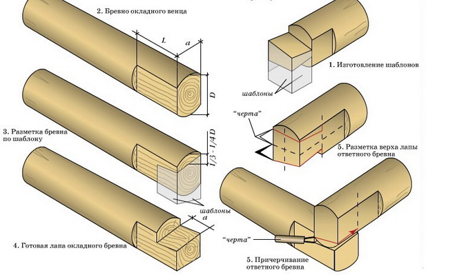 В случае ошибки необходимо скорректировать разметку. Если поправки сделаны верно, бревна плотно стыкуются друг с другом.