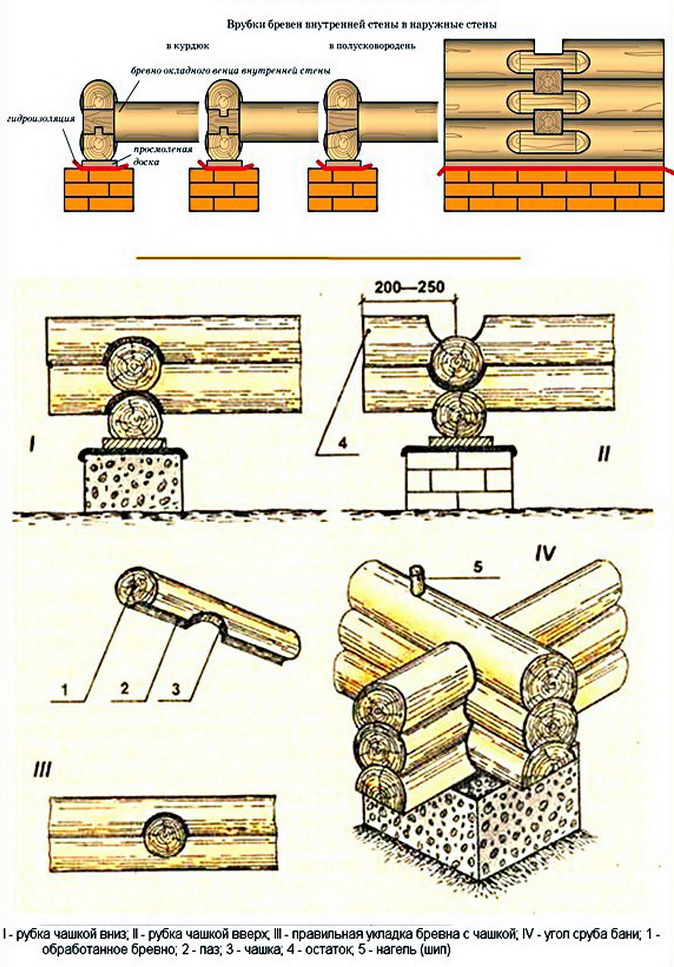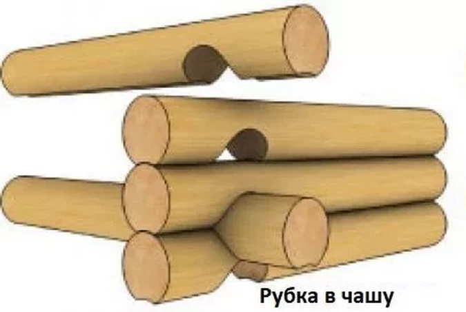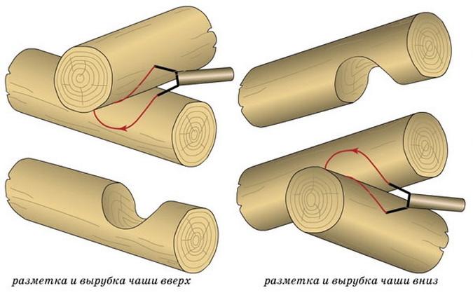 Существуют несколько способов врубки. Рассмотрим самый простой из них — врубку «в чашу», или в обло.