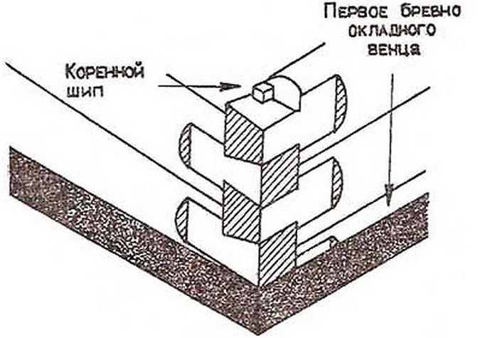 Сруб станет еще устойчивее, если в каждом ряду бревен делать нагели — круглые или прямоугольные шипы.