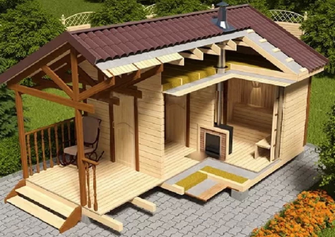 Отдельно стоящие бани обычно покрывают двускатной крышей. Односкатный вариант используют для бани-пристройки. В этом случае крыша бани является продолжением крыши основного здания.