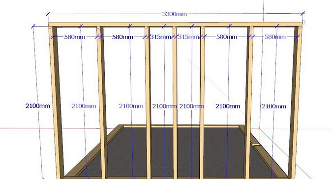 Чтобы сделать баню их готового каркаса правильно, расстояние между осями стоек должно составлять 0,6 м. Если вы планируете сделать в стене проемы или пристроить раму к другим стенам и перегородкам, это расстояние можно изменить. Однако превышать 1 м оно не должно.