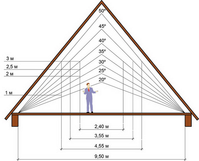 Уклон крыши зависит от климатических условий конкретной местности. Чем больше атмосферных осадков выпадает в данном регионе, тем более крутым делают наклон крыши. В среднем уклон делают в диапазоне от 10° до 60°. Чем круче кровля, тем больше материала требуется на ее строительство.