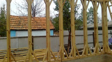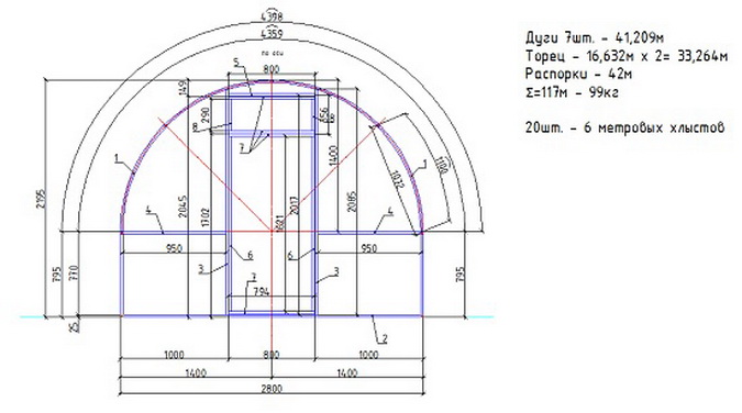 В завершении строительства каркаса нужно сделать торцевые рамы. Собирают конструкцию из пяти прямоугольных створок. Высота средней — 1,7 м, следующие по высоте — 1,4 м, самые низкие — 45 см. Конструкцию выполняют, используя деревянные брусья для горизонтальных перекрытий рамы. Эта торцевая рама усилит каркас, сделает его более устойчивым.