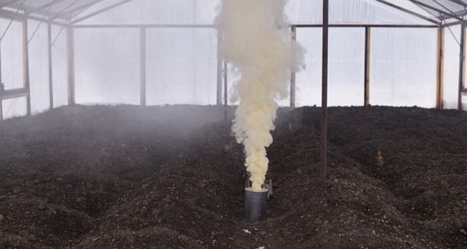 Необходимо также провести газацию помещения теплицы. Для этого несколько раз в течение 2-3 дней жгут серные шашки (на 1 м3 50 г серной шашки). После того как дезинфекция будет завершена, тщательно промывают все обработанные поверхности горячей водой.