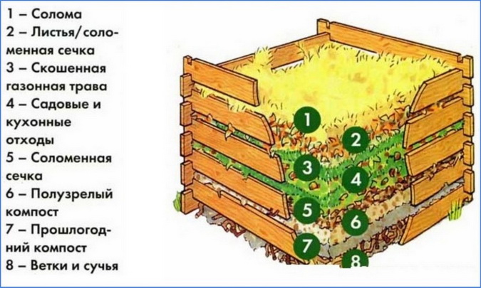 Хорошо перемешанные древесные отходы укладывают в штабель на 2-3 месяца. После этого добавляют его в почвенную смесь. Именно поэтому заготовку компоста следует сделать в конце лета, тогда к ноябрю он будет готов.