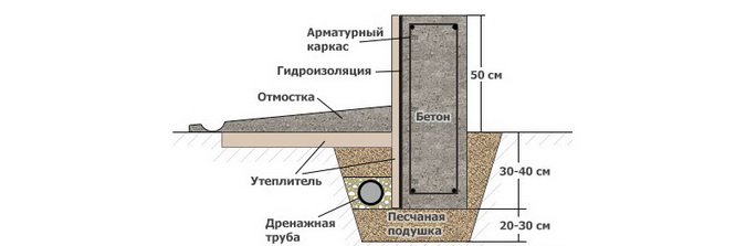 Ширина траншеи для фундамента должна превышать ширину стены примерно на 30%. Глубина траншеи должна быть больше глубины промерзания грунта — как правило, 80 сантиметров для этого хватает.