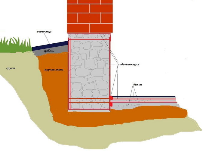 Через два-три месяца после закладки фундамента можно приступать к возведению цоколя. Делают его не слишком высоким, 25 сантиметров будет достаточно. Для цоколя можно брать бутобетон или красный кирпич. Главное — предусмотреть хорошую гидроизоляцию цоколя. Для этого промажьте поверхность фундамента битумной смолой и уложите на нее гидроизоляцию из двух-трех слоев рубероида, промазанных смолой. Кромка гидроизоляции должна на 20—40 миллиметров выступать над вертикальной поверхностью фундамента.