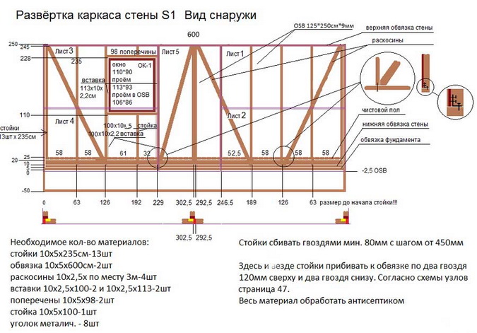 Каркас будущей конструкции изготавливается из балок сечением от 100×100 до 150×150 миллиметров. Точный размер напрямую зависит от климатических условий и средней ветровой нагрузки в месте строительства.