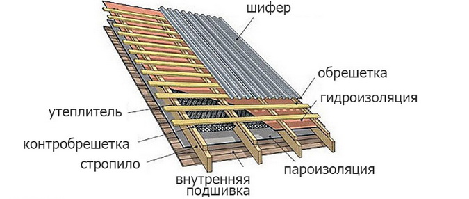 После окончания монтажа гидроизоляции приступают к настилу шифера.