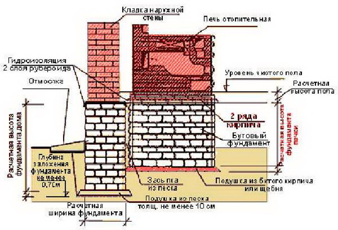 Чтобы обустроить печь с барбекю, требуется обязательно заложить фундамент. Сначала необходимо вырыть котлован для заливки фундамента ниже границы промерзания в вашем районе в глубину. Иначе печь барбекю просто даст осадку, что станет причиной для возникновения трещин и в последующем — разрушения всей конструкции.