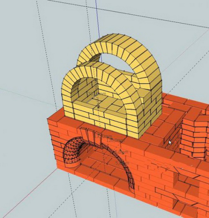 Таким способом образуется неширокий выступ, на него впоследствии можно положить решетку для жарки и поддон под древесный уголь. Если не окажется под рукой поддона нужной ширины, позволяющей опереть его на выступы в стене, то для поддержания поддона используют полочку из металла.