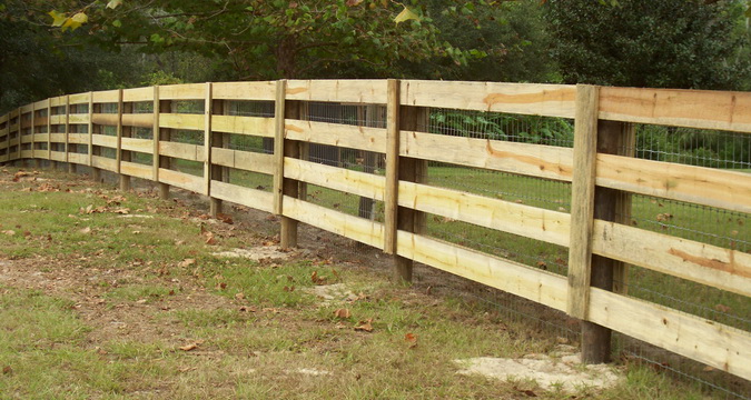 Один из самых простых видов забора — это несколько горизонтальных прожилин, укрепленных между столбами. Такая ограда очень популярна в США и называется изгородью в стиле ранчо. Подобный забор можно делать из оструганных досок хвойных пород, тогда ограда будет иметь более опрятный внешний вид, вполне подходящий для современного дома с ухоженным садом, или же из необработанных широких досок или жердей, которые выглядят более естественно и соответствуют более свободному стилю и разросшемуся саду. Обычно в пролете используют 2—3 поперечины, однако их может быть и больше. Через любой забор типа ранчо легко перелезть, потому он хорош лишь для обозначения границ участка или огораживания пастбища, но вряд ли защитит от нежелательного проникновения хищников, людей и тем более детей, которые обожают лазить по таким «лесенкам».