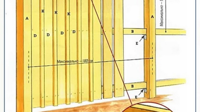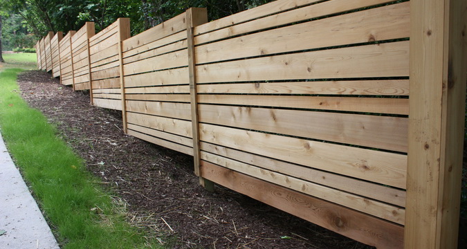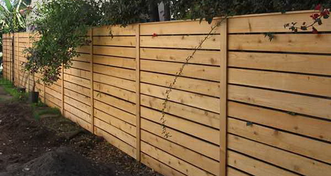 В заборах с разреженной обшивкой делянки могут располагаться и горизонтально. Их прибивают по обе стороны вертикальных опорных брусков так, чтобы они перекрывали друг друга.