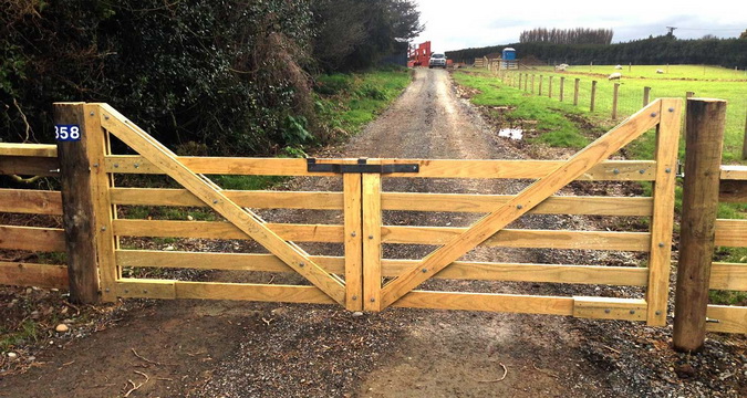 Створки таких ворот обычно делают с поперечинами, соединенными с вертикальными брусьями на прямых шипах. Поперечины также могут быть скреплены болтами со срединными одиночными или двойными вертикальными брусьями. Такое соединение чаще применяется в конструкциях калиток, изготовленных в том же стиле. Двойные планки, стягивающие по бокам набор прожилин, избавляют калитку от тяжелых цельных брусьев обвязки. К тому же в этом случае не требуется возиться с шиповыми соединениями.