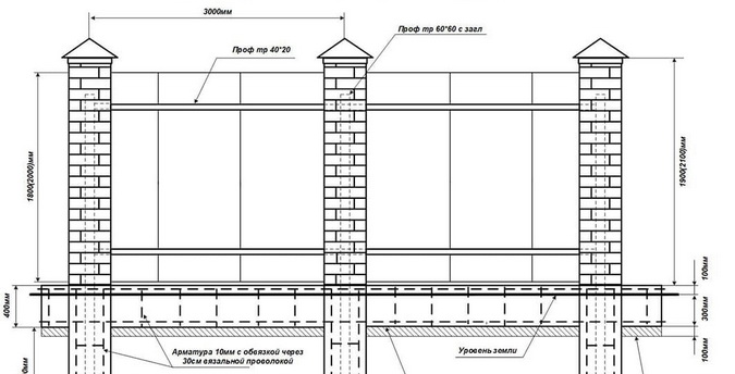 Расстояние между опорными столбами обычно составляет 1,8— 2,5 м. Это позволяет получить надежную ограду с невысокой парусностью и оптимальным количеством опорных столбов. Если же вы хотите сэкономить на столбах за счет увеличения расстояния между ними, то учтите, что первый же сильный ветер может попросту завалить вашу ограду.