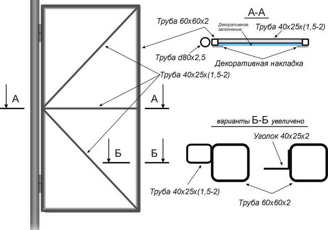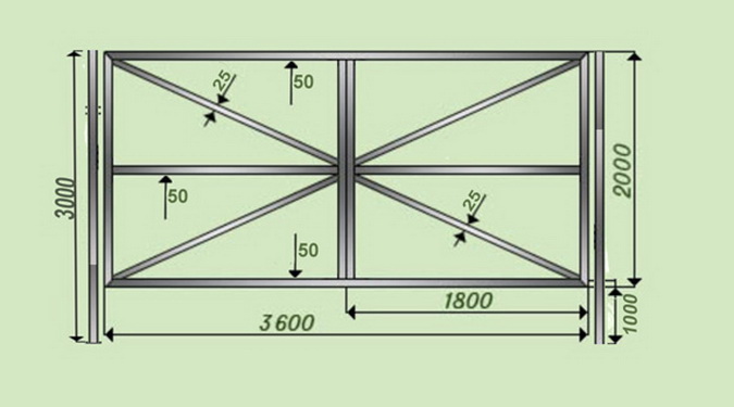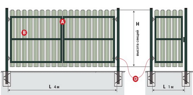 Конструкция створок ворот для такой ограды практически не отличается от конструкции калитки.