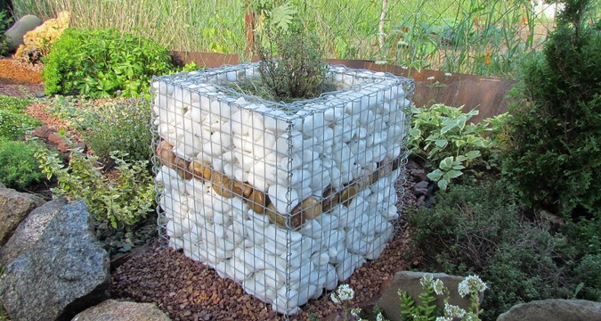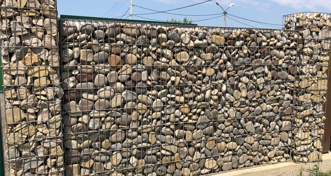 Им не требуется даже фундамент. Благодаря высокой пористости дренаж тоже не нужен. Сетки заполняют прямо на месте любым доступным камнем, галькой, валунами, шлаком, клинкером.
