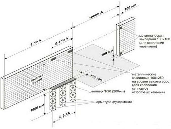 Для поддержки по вертикали блоки можно укладывать между каменными или кирпичными столбами, но лучше использовать специальные столбы с пазами. В любом случае расстояние между столбами должно быть не более 3 м.