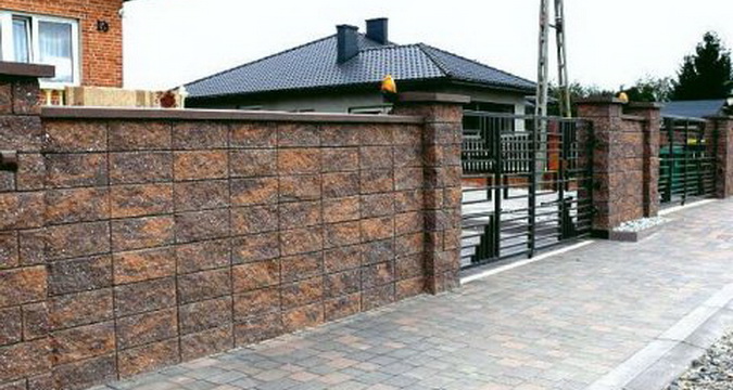 Когда ограда будет доведена до нужной высоты, отделывают гребень стены защитной плиткой и устанавливают на столбы декоративные наконечники. В заключение работ проводят расшивку всех растворных швов.