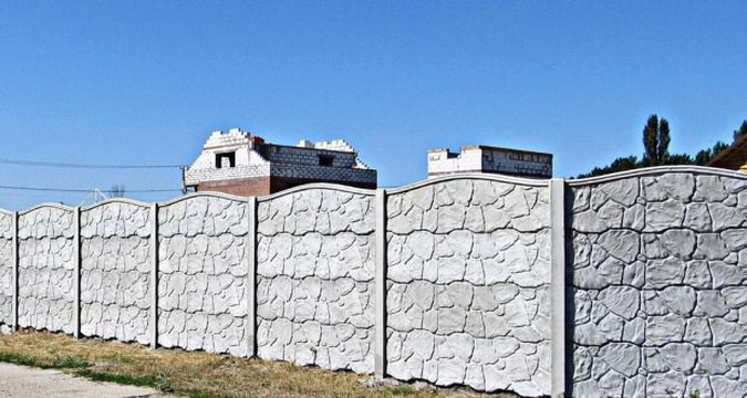 Бетонные заборы распространены довольно широко. Наиболее простым вариантом такой ограды являются самостоящие ограждения. Их устанавливают на специальные опоры, являющиеся неотъемлемой частью самих плит. При этом нет необходимости выполнять подготовительные земельные работы, ограду можно собрать за несколько часов — тяжелые панели просто сгружают краном, выстраивая их в линию.