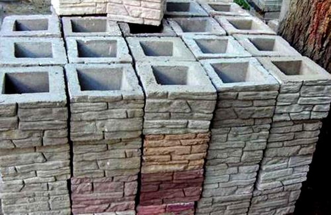 Декоративные блоки существенно отличаются от других стеновых элементов квадратной формой, поэтому при кладке между ними отсутствует горизонтальная перевязка. Блоки просто укладывают штабелем, формируя вертикальные колонны. При строительстве ограды из этих блоков необходимо обеспечить им надежную опору.